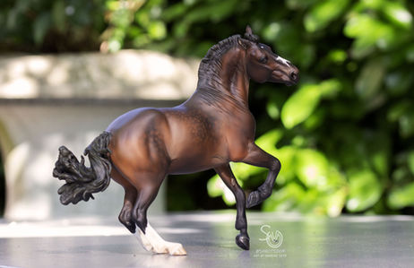 Now available the amazing Meruem d'Or in traditional scale (a bit heavy because of a lot of apoxie!). Painted to a rich dark bay with an unusual white marking over the head (I do have the reference of course!). He will come with all his documentation needed for show.